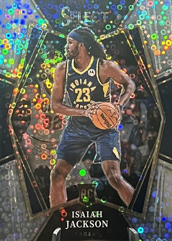 This card is 1 of 90 Isaiah Jackson's card variations in the 2021 Select set being tracked by Sports Card Investor, including Concourse, Concourse Green Ice, Concourse Green White Purple, Concourse Silver, and Concourse Blue Cracked Ice.