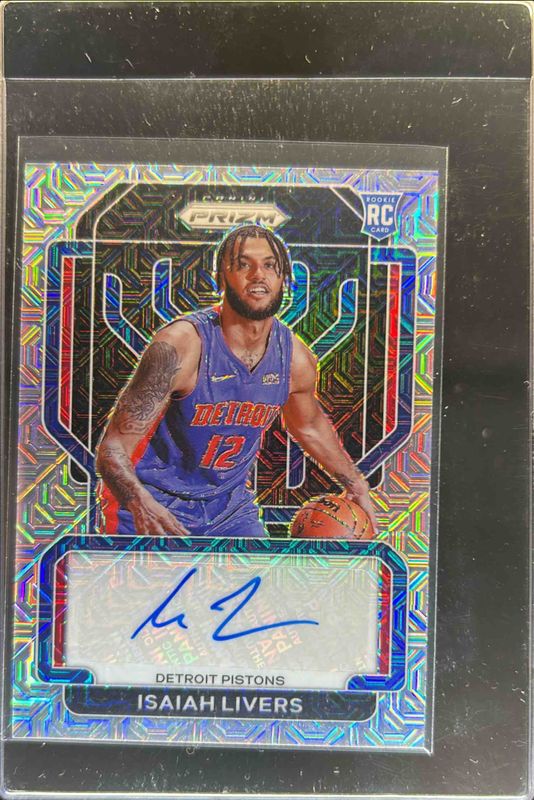 The Isaiah Livers 2021 Prizm #RS-ILV Rookie Signatures - Mojo /25 card is 1 of 88 Isaiah Livers' card variations in the 2021 Prizm set being tracked by Sports Card Investor, including Base, Blue NBA 75th Anniversary, Blue Wave, Choice Blue Yellow Green, and Factory Set Blue Hyper.