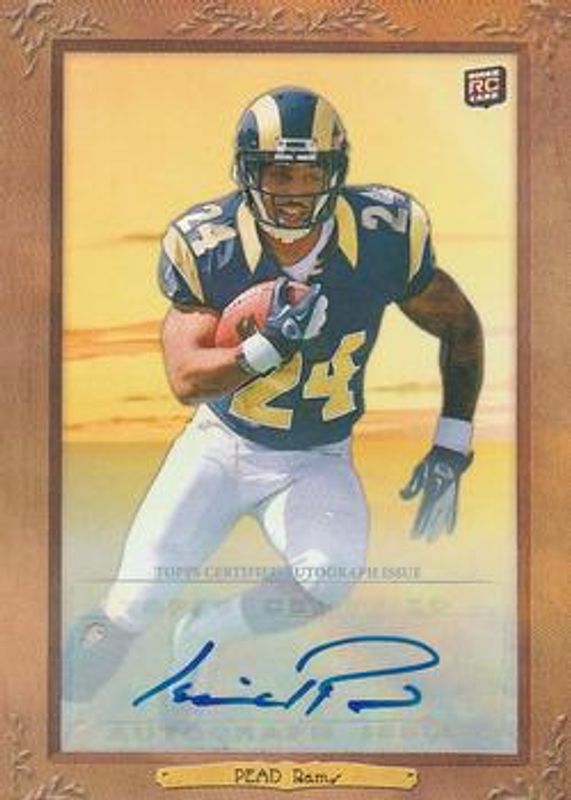The Isaiah Pead 2012 Topps Turkey Red #73 Autographs /5 Rookie card is 1 of 8 Isaiah Pead's card variations in the 2012 Topps Turkey Red set being tracked by Sports Card Investor, including Base, Printing Plate Black /1, Printing Plate Cyan /1, Printing Plate Magenta /1, and Printing Plate Yellow /1.