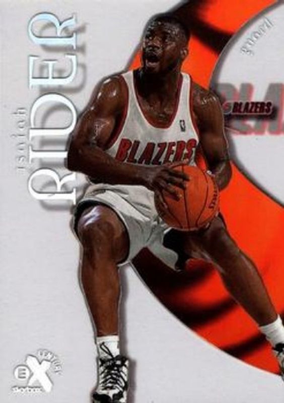 The Isaiah Rider 1998 Skybox E-X Century #53 Base card is 1 of 3 Isaiah Rider's card variations in the 1998 Skybox E-X Century set being tracked by Sports Card Investor, including Essential Credentials Future (/38), and Essential Credentials Now (/53).
