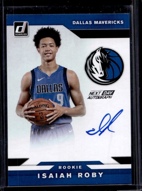 The Isaiah Roby 2019 Donruss #ND-IRB Next Day Autographs Rookie card is 1 of 42 Isaiah Roby's card variations in the 2019 Donruss set being tracked by Sports Card Investor, including Base, Green Flood, Green & Yellow Laser, Infinite, and Orange Laser.