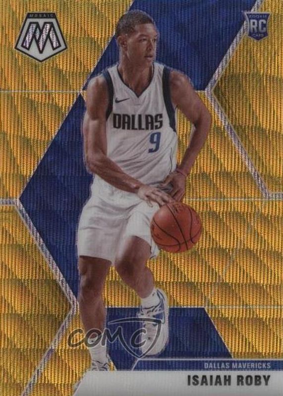 The Isaiah Roby 2019 Mosaic #232 Tmall Gold Wave Rookie card in Raw condition has not changed in price in the last 30 days and was last sold for $0.99 .