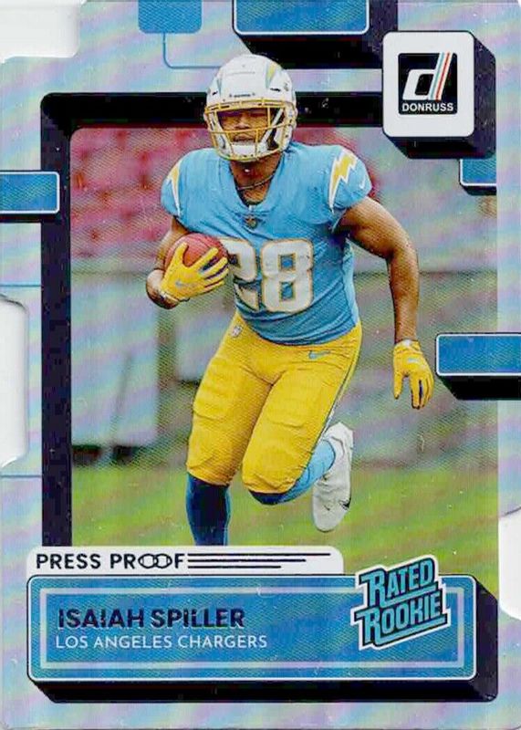 This card is 1 of 6 Isaiah Spiller's card variations in the 2022 Donruss set being tracked by Sports Card Investor, including Press Proof Silver /100, Press Proof Gold /50, Press Proof Gold Die-Cut /25, Press Proof Black /10, and Press Proof Black Die-Cut /1.