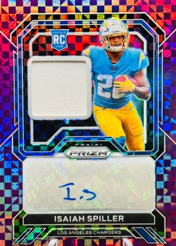 2022 Panini Prizm Isaiah Spiller Purple Power Rookie Patch Auto 11/49 Chargers