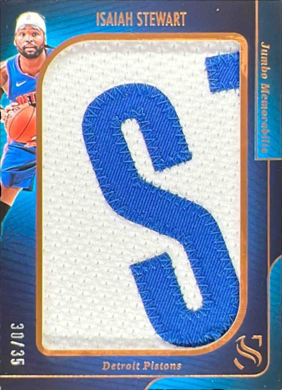 Isaiah Stewart's Basketball cards are available in at least 80 sets. Isaiah Stewart's biggest 7-day price movers are 2024 Silhouette #JM-ISH Jumbo Memorabilia - Bronze /49, 2024 Silhouette #REL-BES NBA Relics - FOTL /1, and 2024 Silhouette #REL-BES NBA Relics.