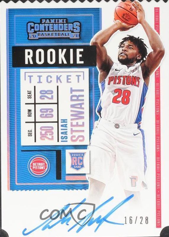 The Isaiah Stewart 2020 Contenders #121 Rookie Ticket Auto - Ticket Stub (/28 - White Jersey) card in Raw condition has not changed in price in the last 30 days.