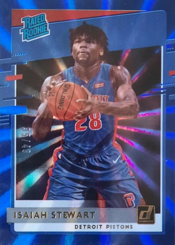 The Isaiah Stewart 2020 Donruss #233 Blue Laser /49 Rookie card in Raw condition has not changed in price in the last 30 days and was last sold for $5.99 .