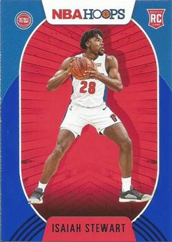 The Isaiah Stewart 2020 Hoops #233 Blue Rookie card is 1 of 43 Isaiah Stewart's card variations in the 2020 Hoops set being tracked by Sports Card Investor, including Base, Hyper Blue, Neon Green, Purple, and Purple Explosion.