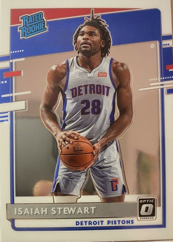 The Isaiah Stewart 2020 Optic #166 Base Rookie card in Raw condition has moved down -$0.60 (-37.7%) in the last 30 days and was last sold for $0.99 .