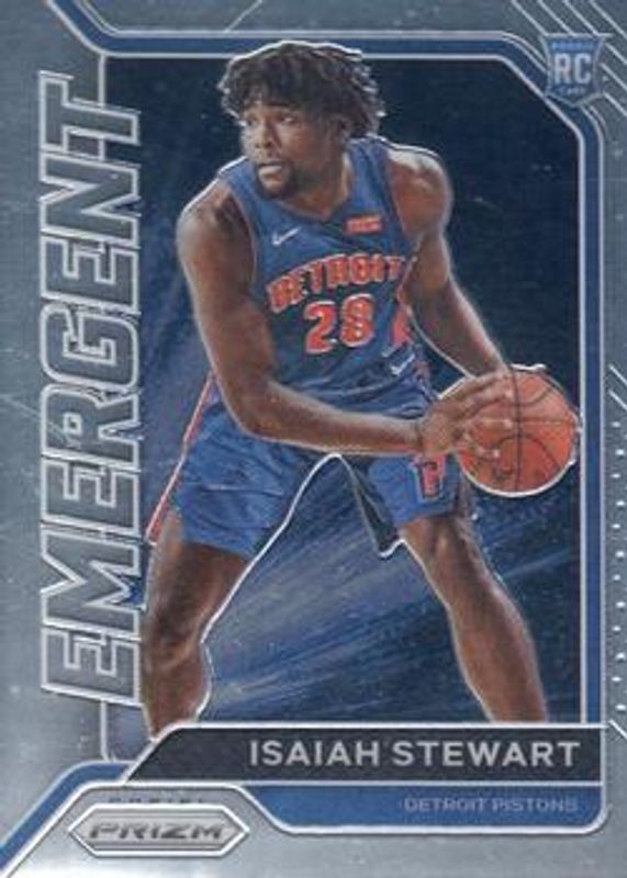 The Isaiah Stewart 2020 Prizm #2 Emergent Rookie card is 1 of 76 Isaiah Stewart's card variations in the 2020 Prizm set being tracked by Sports Card Investor, including Base, Choice Blue Yellow Green, Fast Break, Green, and Green Ice.