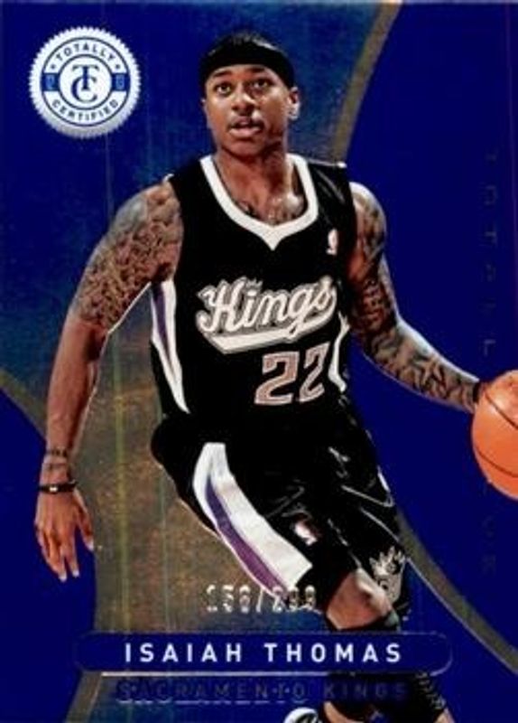 The Isaiah Thomas 2012 Totally Certified #217 Totally Blue /299 Rookie card is 1 of 16 Isaiah Thomas' card variations in the 2012 Totally Certified set being tracked by Sports Card Investor, including Base, Totally Red /499, Totally Gold /25, Totally Green /5, and Printing Plate Black /1.