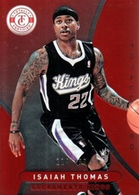 The Isaiah Thomas 2012 Totally Certified #217 Totally Red /499 Rookie card is 1 of 16 Isaiah Thomas' card variations in the 2012 Totally Certified set being tracked by Sports Card Investor, including Base, Totally Blue /299, Totally Gold /25, Totally Green /5, and Printing Plate Black /1.