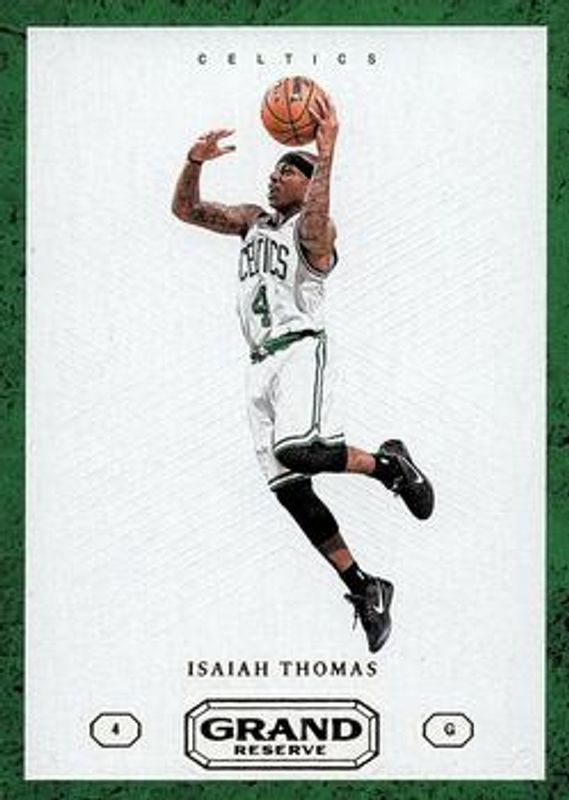 The Isaiah Thomas 2016 Grand Reserve #12 Base card is 1 of 12 Isaiah Thomas' card variations in the 2016 Grand Reserve set being tracked by Sports Card Investor, including Vintage, Dominating Performances, Startups, Unbreakable, and Difference Makers /75.
