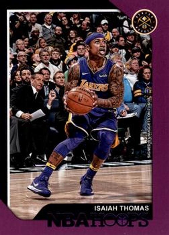 The Isaiah Thomas 2018 Hoops #195 Purple card is 1 of 20 Isaiah Thomas' card variations in the 2018 Hoops set being tracked by Sports Card Investor, including Base, Red Backs, Premium Box Set /199, Blue, and Teal Explosion.