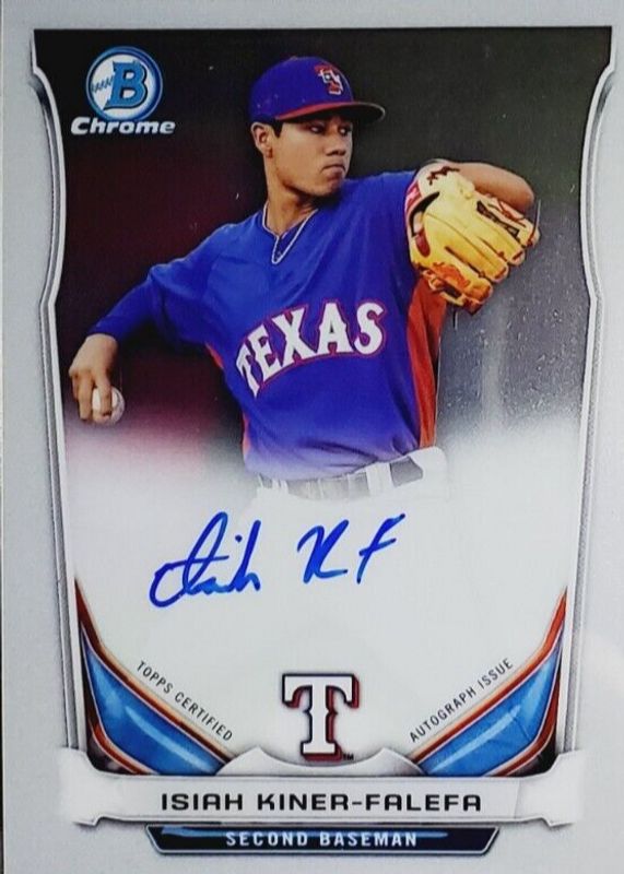 The Isiah Kiner-Falefa 2014 Bowman Chrome #BCAP-IK Prospect Auto card in Raw condition has moved up $0.93 (+20.4%) in the last 30 days and was last sold for $5.50 .
