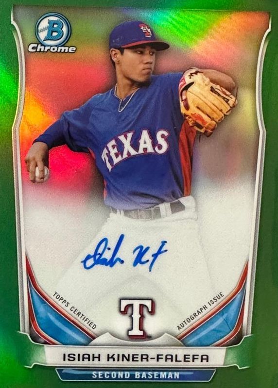 Best Prices Available For Sale of Isiah Kiner-Falefa 2014 Bowman Chrome #BCAP-IK Prospect Auto - Green Refractor /75
