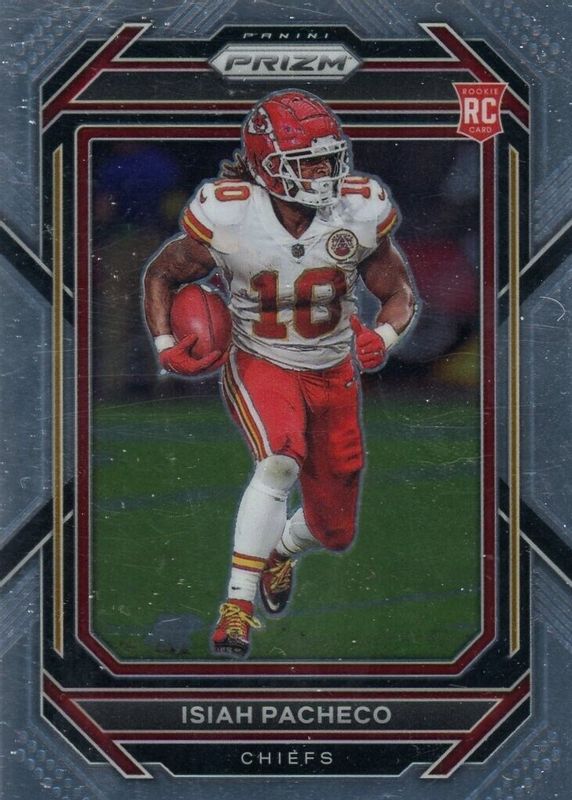 The Isiah Pacheco 2022 Prizm #352 Base Rookie card in Raw condition has moved up $1.99 (+199%) in the last 30 days and was last sold for $2.99 .