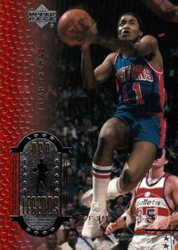 The Isiah Thomas 1999 Upper Deck Legends #45 Base card is 1 of 8 Isiah Thomas' card variations in the 1999 Upper Deck Legends set being tracked by Sports Card Investor, including Commemorative Collection /50, Commemorative Collection Gold /1, Legendary Signatures, Recollections, and Legendary Jerseys /33.
