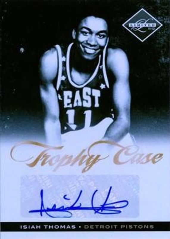 The Isiah Thomas 2011 Limited #19 Trophy Case Signatures /25 card is 1 of 18 Isiah Thomas' card variations in the 2011 Limited set being tracked by Sports Card Investor, including Base /299, Silver Spotlight /49, Gold Spotlight /25, National Convention VIP /5, and Platinum Spotlight /1.