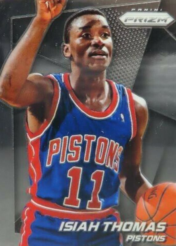 This card is 1 of 18 Isiah Thomas' card variations in the 2014 Prizm set being tracked by Sports Card Investor, including Blue Green Mosaic, Blue Mojo, Blue Wave, Green, and Red White Blue Pulsar.