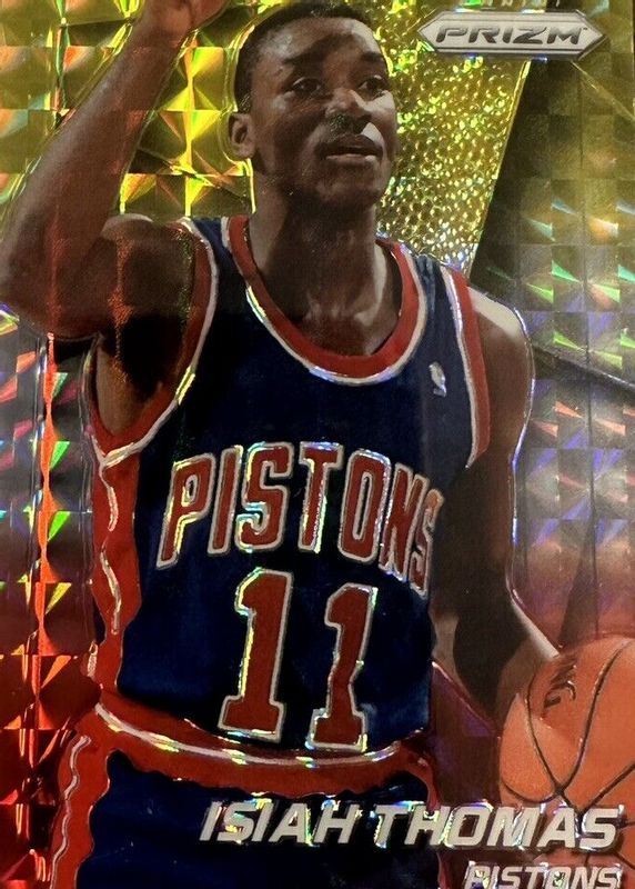 This card is 1 of 18 Isiah Thomas' card variations in the 2014 Prizm set being tracked by Sports Card Investor, including Base, Blue Green Mosaic, Blue Mojo, Blue Wave, and Green.