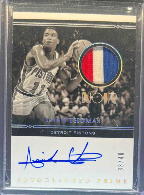 The Isiah Thomas 2020 Noir #APB-ITH Autographed Prime Black & - White /25 card is 1 of 9 Isiah Thomas' card variations in the 2020 Noir set being tracked by Sports Card Investor, including Icons Memorabilia /99, Spotlight Signatures /49, Spotlight Signatures Vertical /49, Autographed Prime Color /25, and Icons Memorabilia - Prime /25.