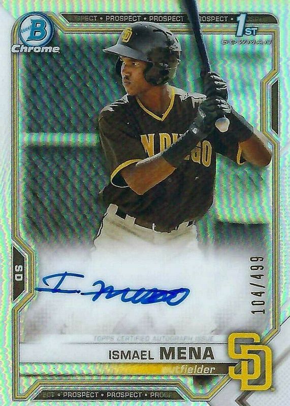 2021 Bowman Ismael Mena Chrome Auto 1st Refractor #473/499 Padres