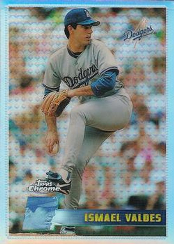 The Ismael Valdes 1996 Topps Chrome #128 Refractor card is 1 of 2 Ismael Valdes' card variations in the 1996 Topps Chrome set being tracked by Sports Card Investor, including Base.