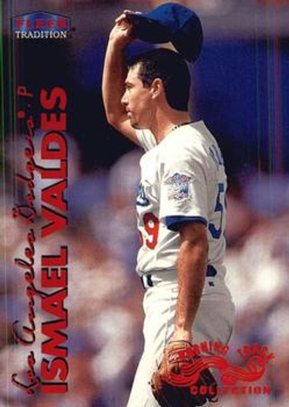The Ismael Valdes 1999 Fleer Tradition #272W Warning Track Collection card is 1 of 4 Ismael Valdes' card variations in the 1999 Fleer Tradition set being tracked by Sports Card Investor, including Base, Millennium, and Starting 9 /9.