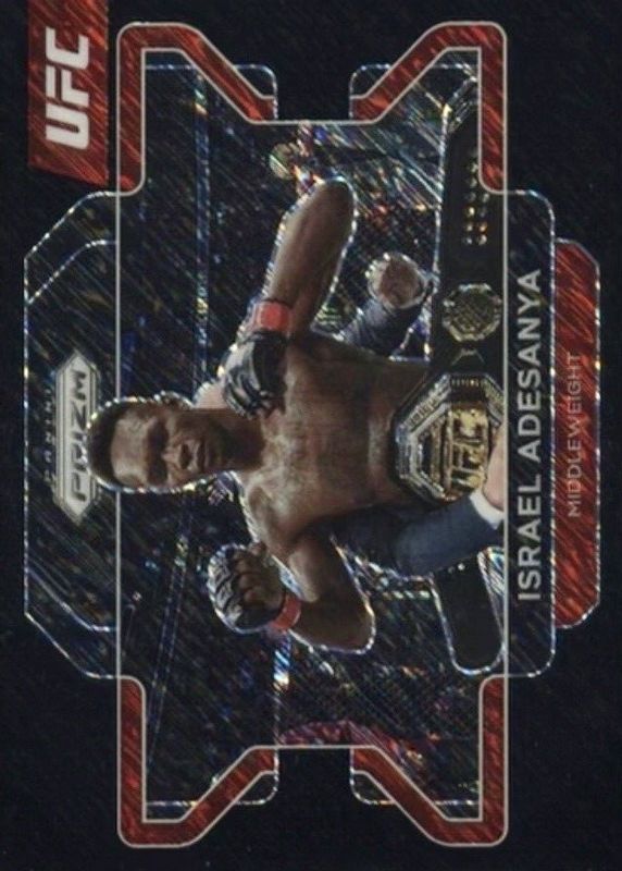 This card is 1 of 24 Israel Adesanya's card variations in the 2022 Prizm UFC set being tracked by Sports Card Investor, including Green, Hyper, Ice, Pink Ice, and Ruby Wave.