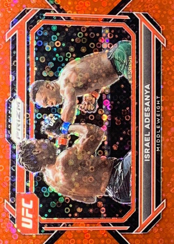This card is 1 of 19 Israel Adesanya's card variations in the 2023 Prizm UFC set being tracked by Sports Card Investor, including Red /199, Blue /175, Purple /149, Orange /99, and Premium Box Set /99.