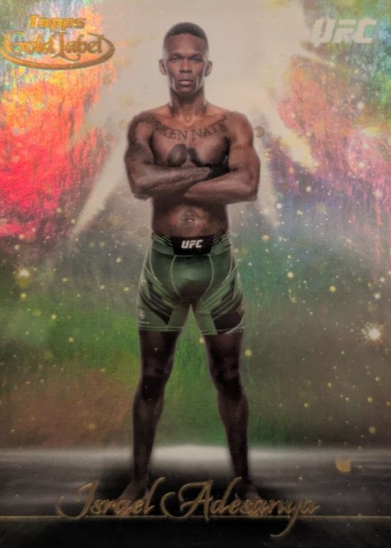 This card is 1 of 25 Israel Adesanya's card variations in the 2024 Topps Gold Label UFC set being tracked by Sports Card Investor, including Class 1, Class 1 - Green, Class 2, Class 2 - Green, and Class 3.