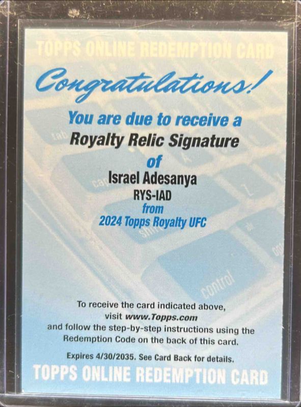 Israel Adesanya 2024 Topps UFC Royalty #RYS-IAD Royalty Relic Signatures /99 RAW Price Guide