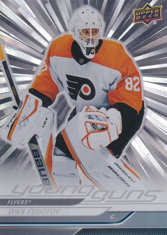This card is 1 of 8 Ivan Fedotov's card variations in the 2024 Upper Deck set being tracked by Sports Card Investor, including Young Guns Base, Young Guns - Clear Cut, Young Guns - Deluxe /250, Young Guns - UD Exclusives /100, and Young Guns - Outburst Red /25.