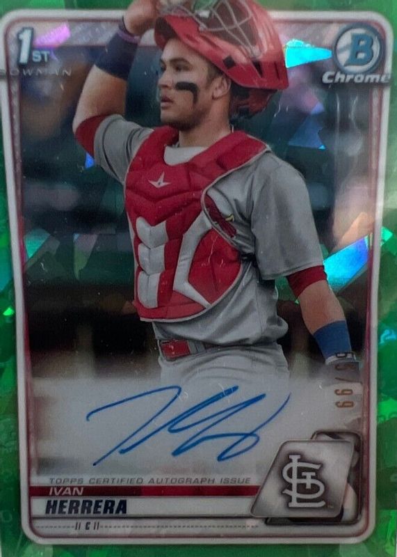 2020 Bowman Chrome 1st IVAN HERRERA autograph Green Atomic 20/99 #CPA-IH Cards