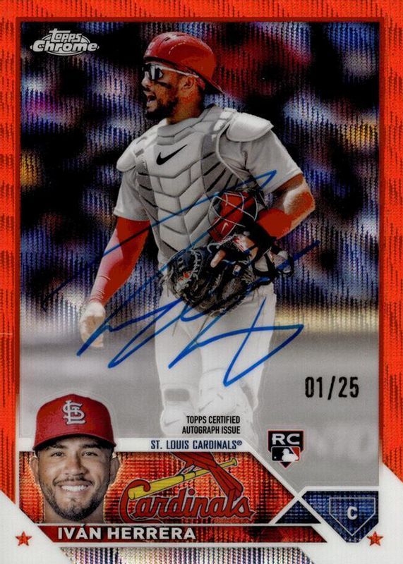Auctions Ending Soon for Ivan Herrera 2023 Topps Chrome #RA-IH Rookie Autographs - Orange Wave Refractor /25 RAW