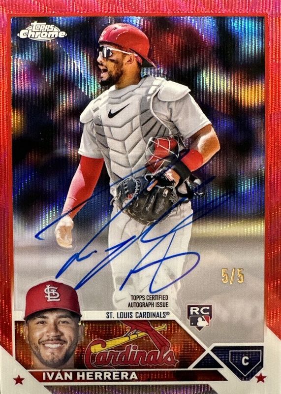 Auctions Ending Soon for Ivan Herrera 2023 Topps Chrome #RA-IH Rookie Autographs - Red Wave Refractor /5 RAW