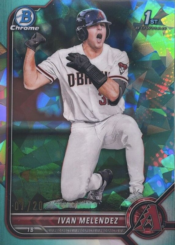 2022 Bowman Draft Sapphire Ivan Melendez Chrome Aqua 1st Prospect #/20