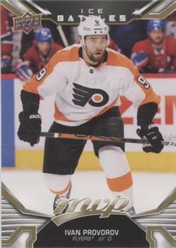 The Ivan Provorov 2022 Upper Deck MVP #178 Ice Battles - Gold card is 1 of 13 Ivan Provorov's card variations in the 2022 Upper Deck MVP set being tracked by Sports Card Investor, including Base, Blue Script, Gold Script, Ice Battles, and Silver Script.
