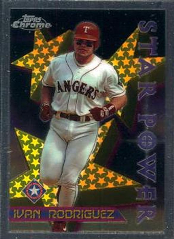 The Ivan Rodriguez 1996 Topps Chrome #87 Base card is 1 of 6 Ivan Rodriguez's card variations in the 1996 Topps Chrome set being tracked by Sports Card Investor, including #39 Base, #87 Star Power, #39 Refractor, #87 Refractor, and #87 Star Power - Refractor.