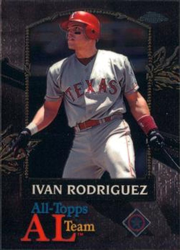 The Ivan Rodriguez 2000 Topps Chrome #AT12 All Topps card is 1 of 12 Ivan Rodriguez's card variations in the 2000 Topps Chrome set being tracked by Sports Card Investor, including Base, Refractor, Allegiance, Allegiance - Refractor, and All Topps - Refractor.