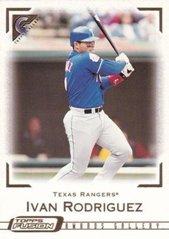 The Ivan Rodriguez 2001 Topps Fusion #108 Base card is 1 of 7 Ivan Rodriguez's card variations in the 2001 Topps Fusion set being tracked by Sports Card Investor, including #90 Base, #87 Base, #91 Base, #FA17 Autographs, and #DF1 Double Feature Relics.