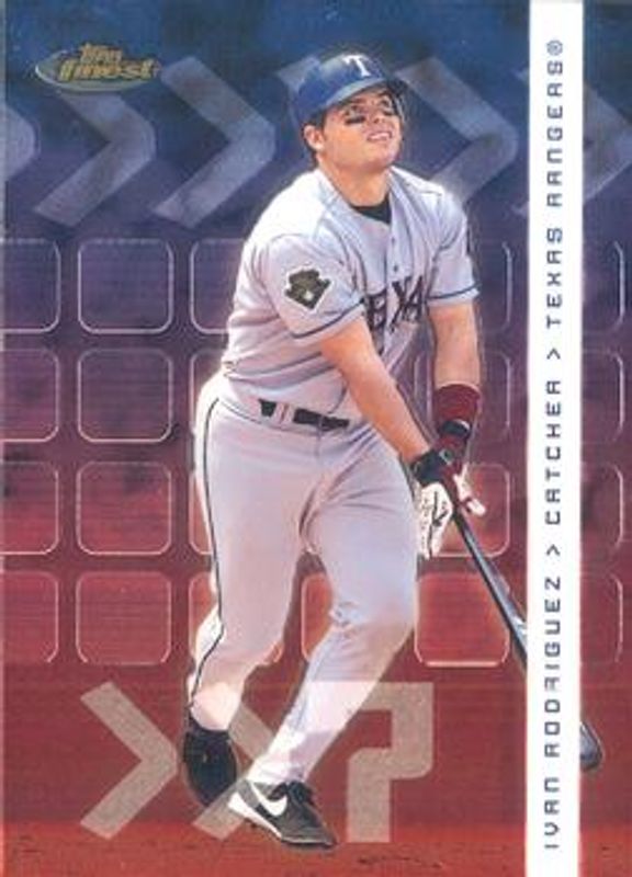 The Ivan Rodriguez 2002 Topps Finest #7 Base card is 1 of 5 Ivan Rodriguez's card variations in the 2002 Topps Finest set being tracked by Sports Card Investor, including Refractor /499, Bat Relics, Jersey Relics, and X-Fractor /299.