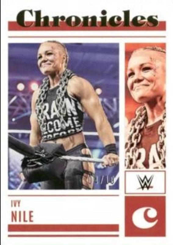 The Ivy Nile 2023 Chronicles WWE #48 Gold /10 card is 1 of 13 Ivy Nile's card variations in the 2023 Chronicles WWE set being tracked by Sports Card Investor, including Base, Bronze, Pink /199, Red /199, and Blue /99.