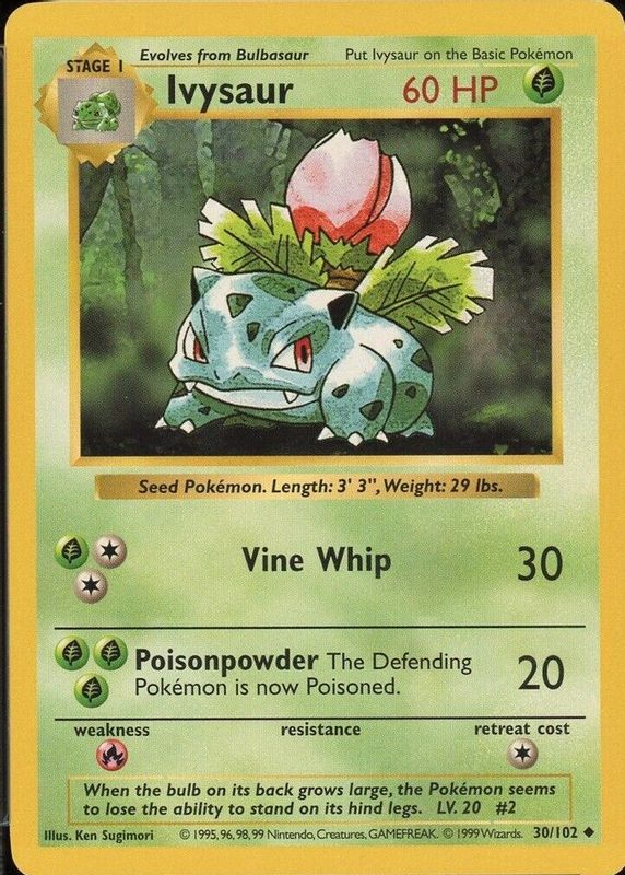 Best Prices Available For Sale of Ivysaur 1999 Pokemon Game #30 Shadowless