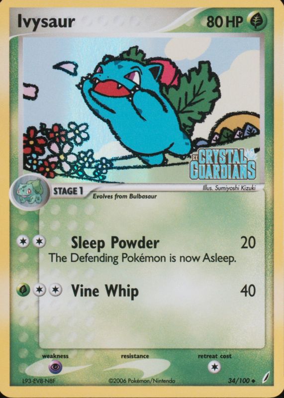 This card is 1 of 5 Ivysaur's card variations in the 2006 EX: Crystal Guardians set being tracked by Sports Card Investor, including #034/100 Base, #035/100 Base, #035/100 Holo (Prerelease), and #035/100 Reverse Holo.