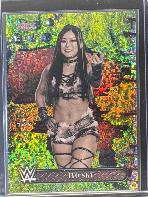 Iyo Sky 2025 Topps Chrome WWE x Cactus Jack #53 Yellow Mini Diamonds Refractor /75 RAW Price Guide