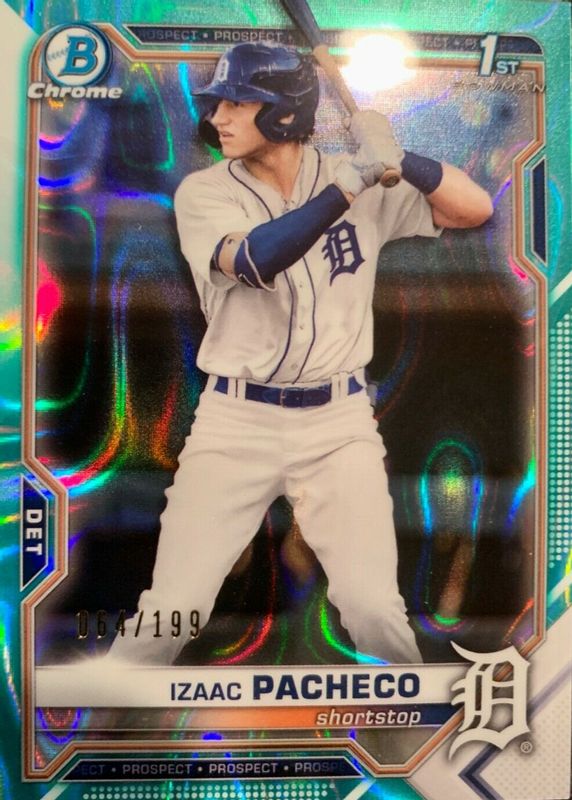 2021 Bowman Chrome Izaac Pacheco 1st Bowman AQUA Lava Refractor /199 Tigers