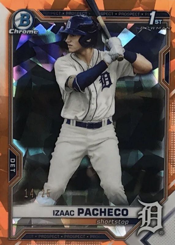 Recent Sales of Izaac Pacheco 2021 Bowman Draft Sapphire Edition #BDC-46 Chrome - Orange /25 (1st) Raw
