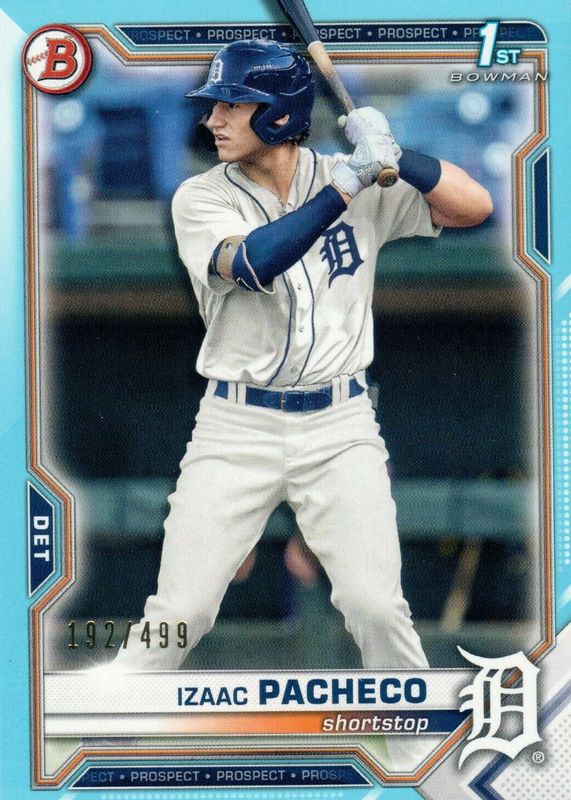 IZAAC PACHECO 2021 1st Bowman Draft #BD-46 Sky Blue /499 Tigers